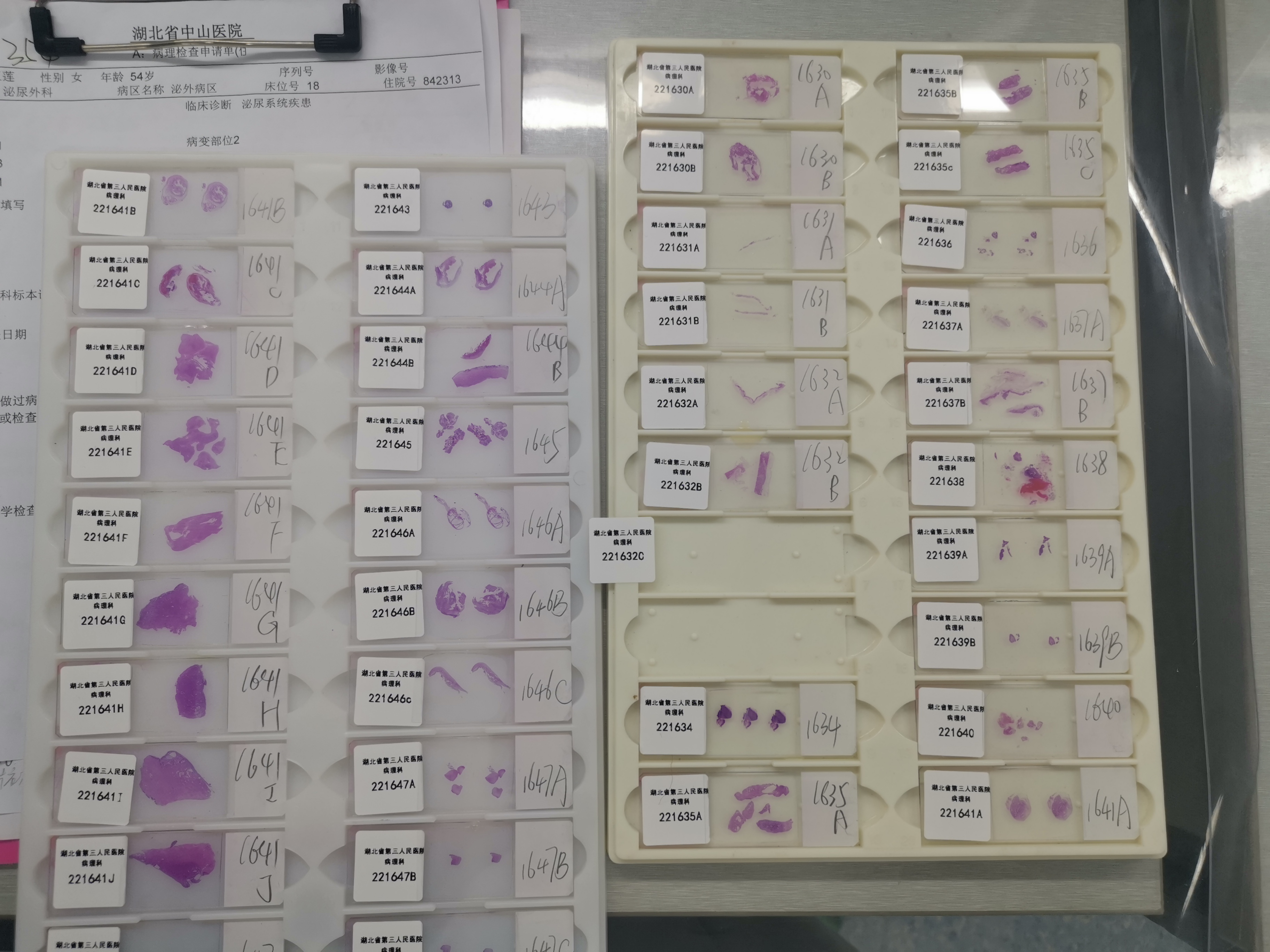 到这里是不是就可以结束了?No, No,只有一部分标本可以发出报告了,还有一部分患者的标本还得进入下一个环节。这里病理技师又登场了,因为有些标本要加做免疫组化,不同的标本加做免疫组化的目的各不相同,有需要确定细胞类型的、有需要鉴定病变性质的、有探讨肿瘤起源或分化的、有辅助疾病诊断和分类的、有指导治疗方案选择的、有帮助判断预后的……从接到免疫组化申请单到出片子,整个过程需要两天。