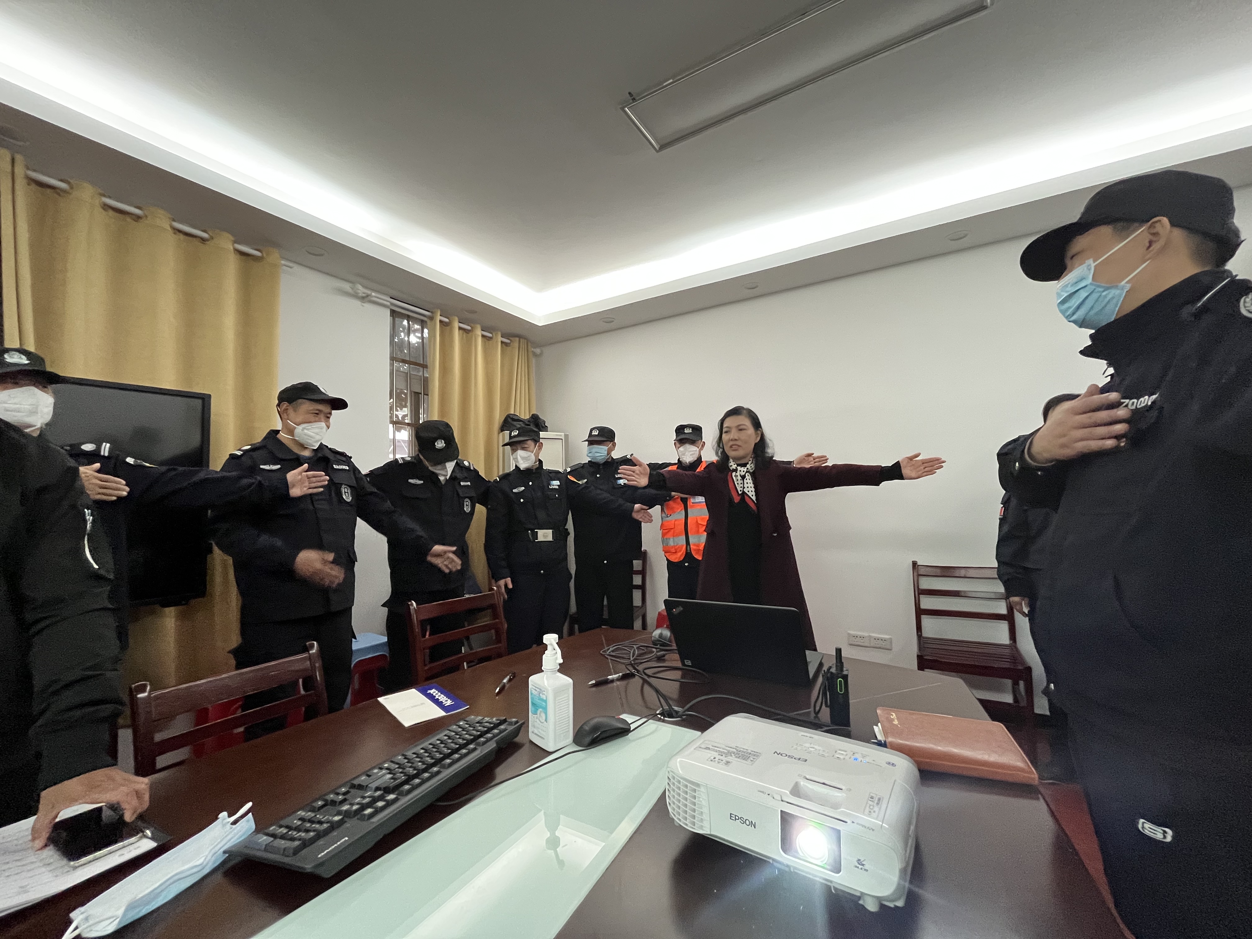 培训中,警笛安保集团王经理对安保人员日常行为规范和礼貌服务用语进行了详细讲解,对停车场指挥中的手势做出了正确的示范,以及对安保人员礼貌服务用语提出了基本要求。