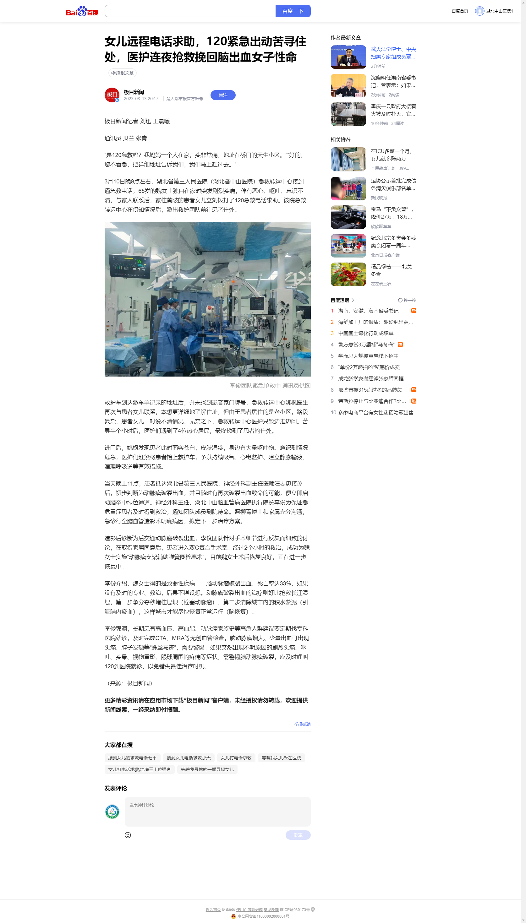 【极目新闻】女儿远程电话求助,120紧急出动苦寻住处,医护连夜抢救挽回脑出血女子性命 发布时间:2023-03-15 来源:极目新闻 上一篇:【荆楚网】周到服务感动66岁阿姨 送锦旗当面感谢护士 下一篇:【荆楚网】女子送娃路上遭遇严重车祸,两院联合实施“杂交复合”手术成功挽救患者生命
