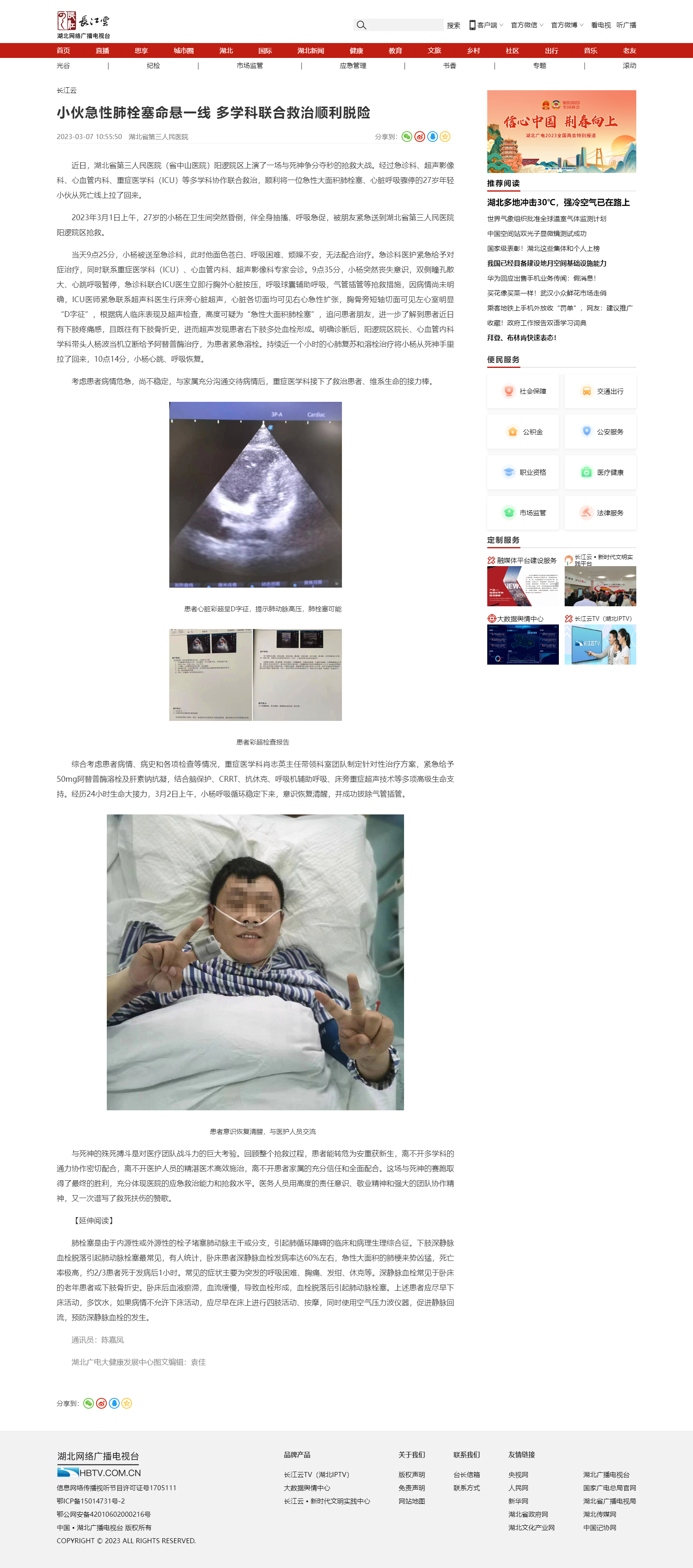 【长江云】小伙急性肺栓塞命悬一线 多学科联合救治顺利脱险 发布时间:2023-05-04 来源:长江云 上一篇:【湖北日报】省三医院肾病内科党支部开展爱心访视暨主题党日活动 下一篇:【长江云】重燃新“膝”望 湖北省第三人民医院为6旬婆婆成功进行膝关节翻修术
