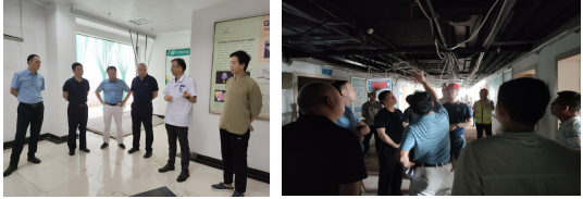 党委书记朱海东、院长魏伟及后勤、保卫科相关负责人深入诚信负1楼、诚信4楼、诚信7楼、医院家属区、老食堂等重点部位,着重对“平战结合”空调改造项目进行了全方位、全覆盖的安全检查。