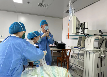 接到病人后,硚口院区呼吸与危重症医学科第一时间通知科室副主任张维、内镜亚专业医师黎威、护士张小樱以及麻醉科医生涂梦妮,制定了详细周密的治疗方案。完善相关检查后,于入院第二天为患者行全麻下支气管镜异物取出术。