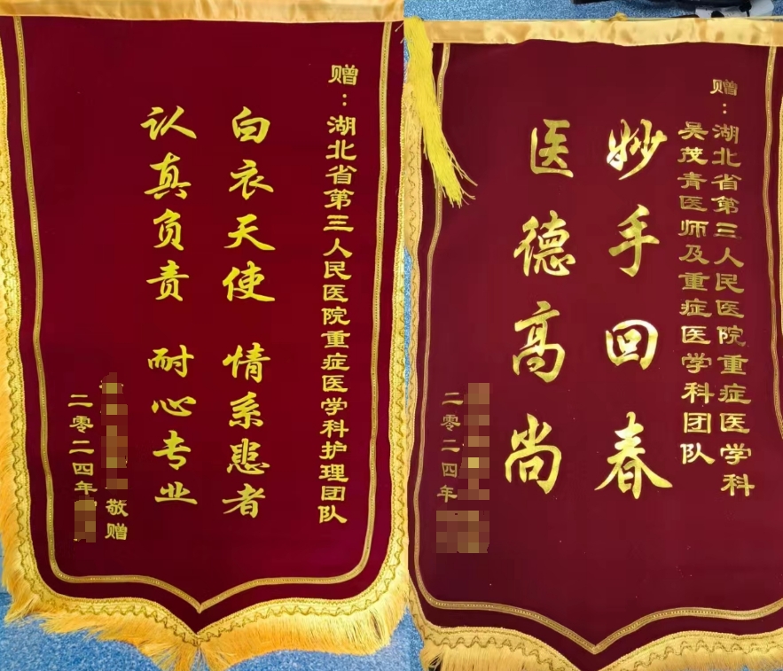 近日,徐婆婆家属带着两面锦旗送到湖北省第三人民医院(湖北省中山医院)重症医学科(ICU),再三感谢医护人员竭尽全力救治其家人。