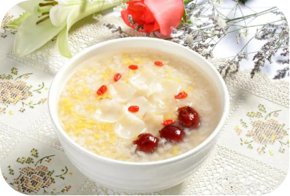 做法:将山药、百合、大枣、薏仁、大米洗净煮粥,每日2次服用。