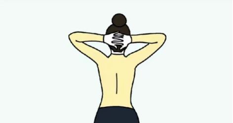 动作四:双手交叉放置到后脑勺,并将头缓慢后仰双手给予阻力,停留3-5秒。