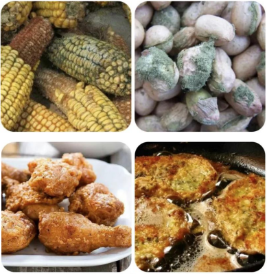 3、霉变食物:霉变坚果、花生、玉米、大米等含黄曲霉素,有较强的肝毒性,可导致肝细胞损伤、坏死和肝功能异常。