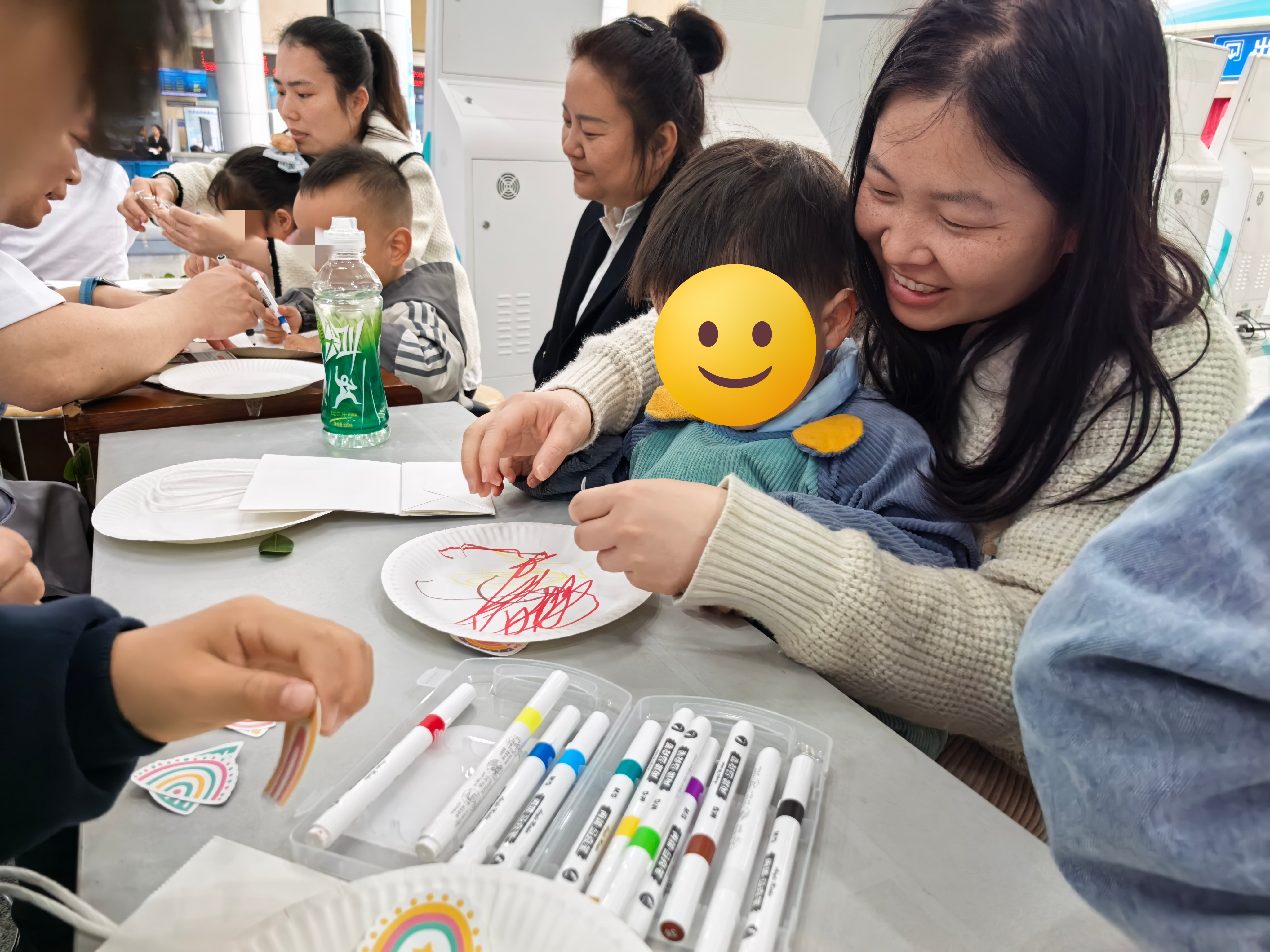 “亲子DIY图画创作”过程中,家长与孩子们大手握小手,在纯白的手提袋上共同用画笔描绘心中的世界。斑斓的色彩、抽象的线条,每一幅作品都承载着孩子们独特的内心独白。在这一刻,语言不再是唯一的沟通方式,艺术成为了连接彼此心灵的纽带,温暖而治愈。